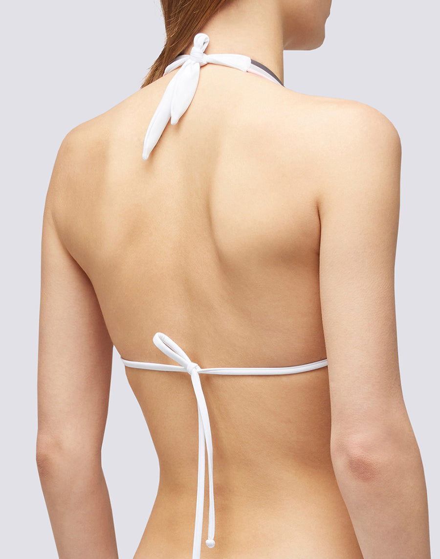 Top de bikini para mujer, decorado con las icónicas bandas tricolores de Sundek. Su diseño de triángulo con relleno ligero ofrece mayor soporte y comodidad, ideal para disfrutar del sol con estilo. Un básico imprescindible para tu colección, realzado por las bandas tricolores que destacan en los tirantes y aportan un toque distintivo al diseño.