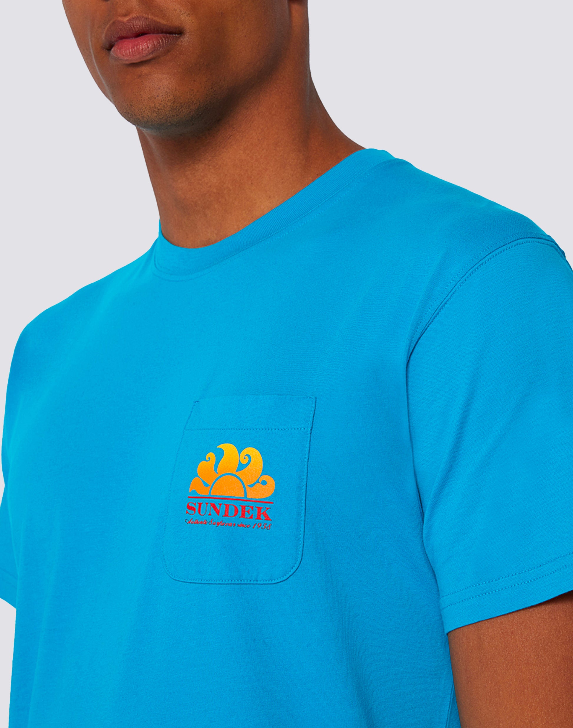Lleva el verano contigo todos los días con esta playera que luce el logotipo difuminado de Sundek, estampado en el bolsillo y en la parte trasera. Perfecta para cualquier momento del día: te acompaña en vacaciones, en tus viajes y en tu día a día con un estilo relajado y auténtico.