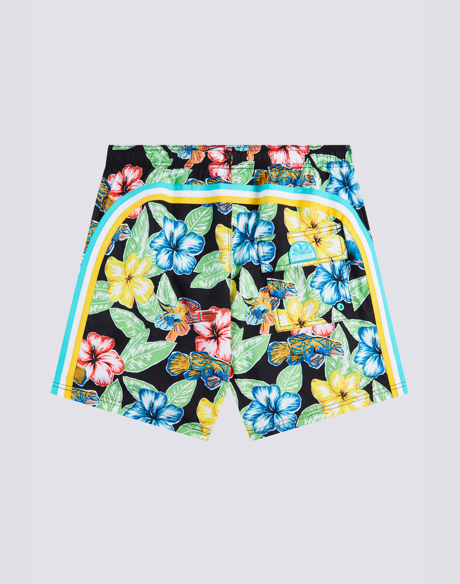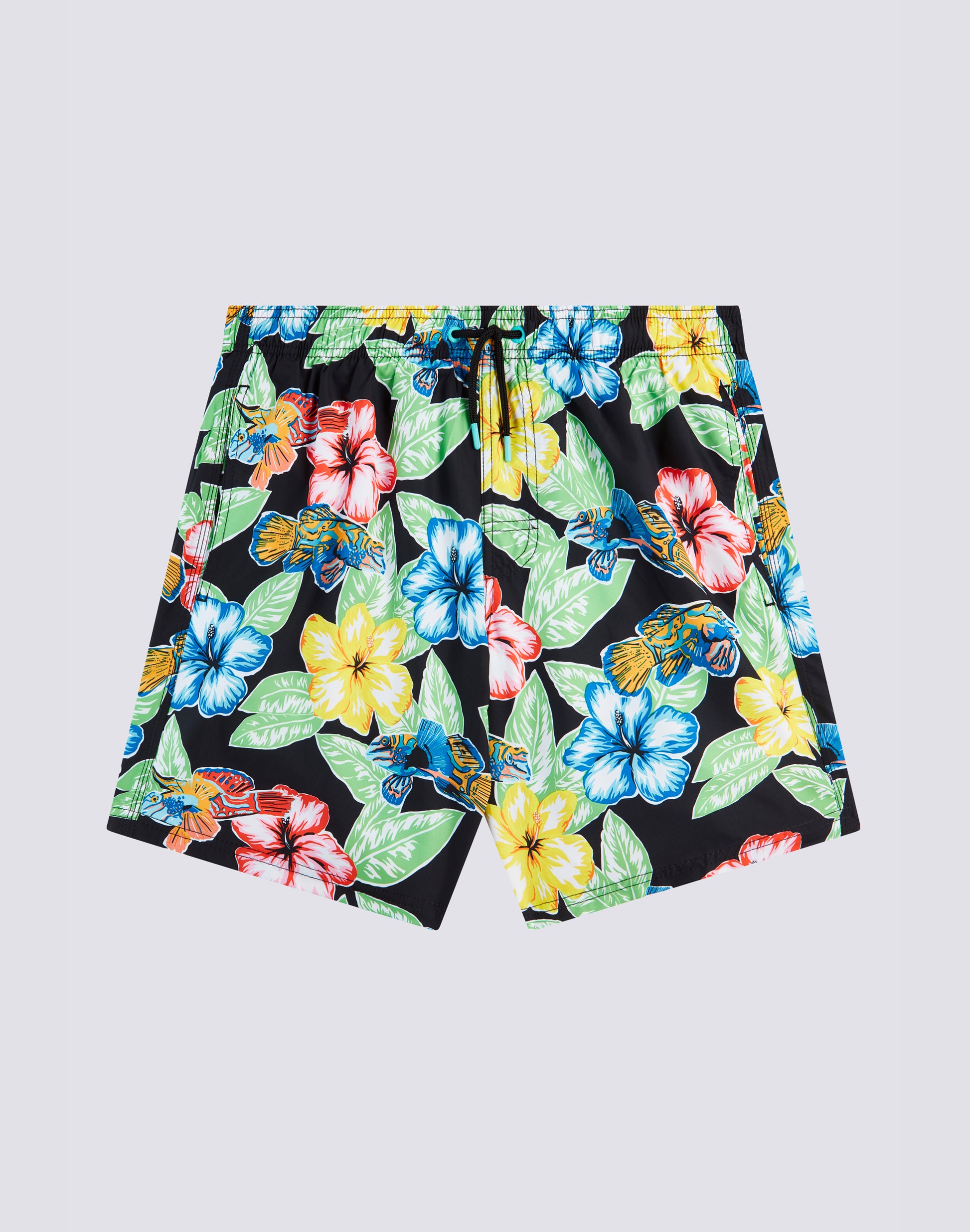 Traje de baño con cintura elástica y cordón ajustable, confeccionado en ligero tejido reciclado Repreve®, hecho a partir de botellas de plástico. Incluye el icónico arcoíris de Sundek en la espalda y el estampado de archivo Animal Fish, que le aporta un estilo único y lleno de personalidad. Costura exterior: 16” / 41 cm (talla M).