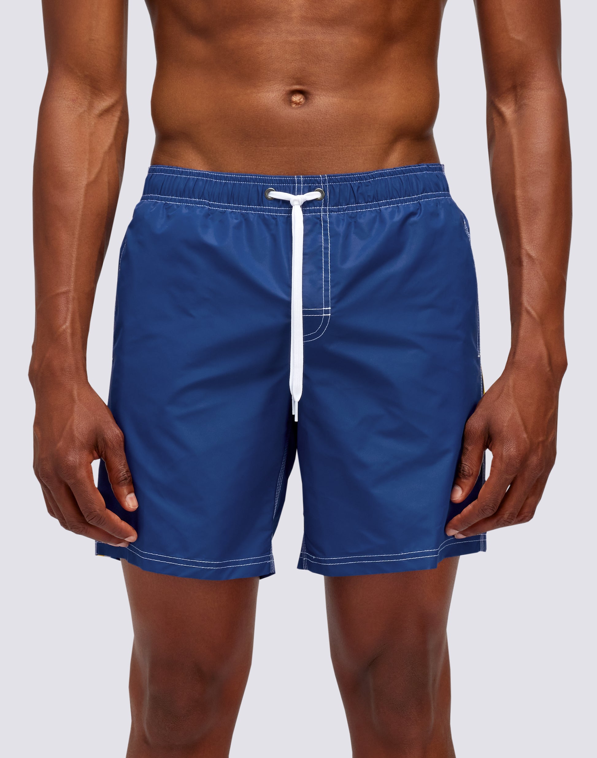 Todo el estilo atemporal de Sundek en este traje de baño con cintura elástica. Moderno, cómodo y diseñado para acompañarte vacaciones tras vacaciones. Nuestro clásico cuenta con ajuste de jareta, el icónico arcoíris contrastante en la parte trasera y está confeccionado en nuestra histórica tela de tafetán de nailon, ligera, resistente y de secado rápido. Incorpora costuras de triple aguja para mayor durabilidad y refuerzo. Largo: 16 pulgadas / 41 cm (talla M), medido desde la parte exterior de la pierna.