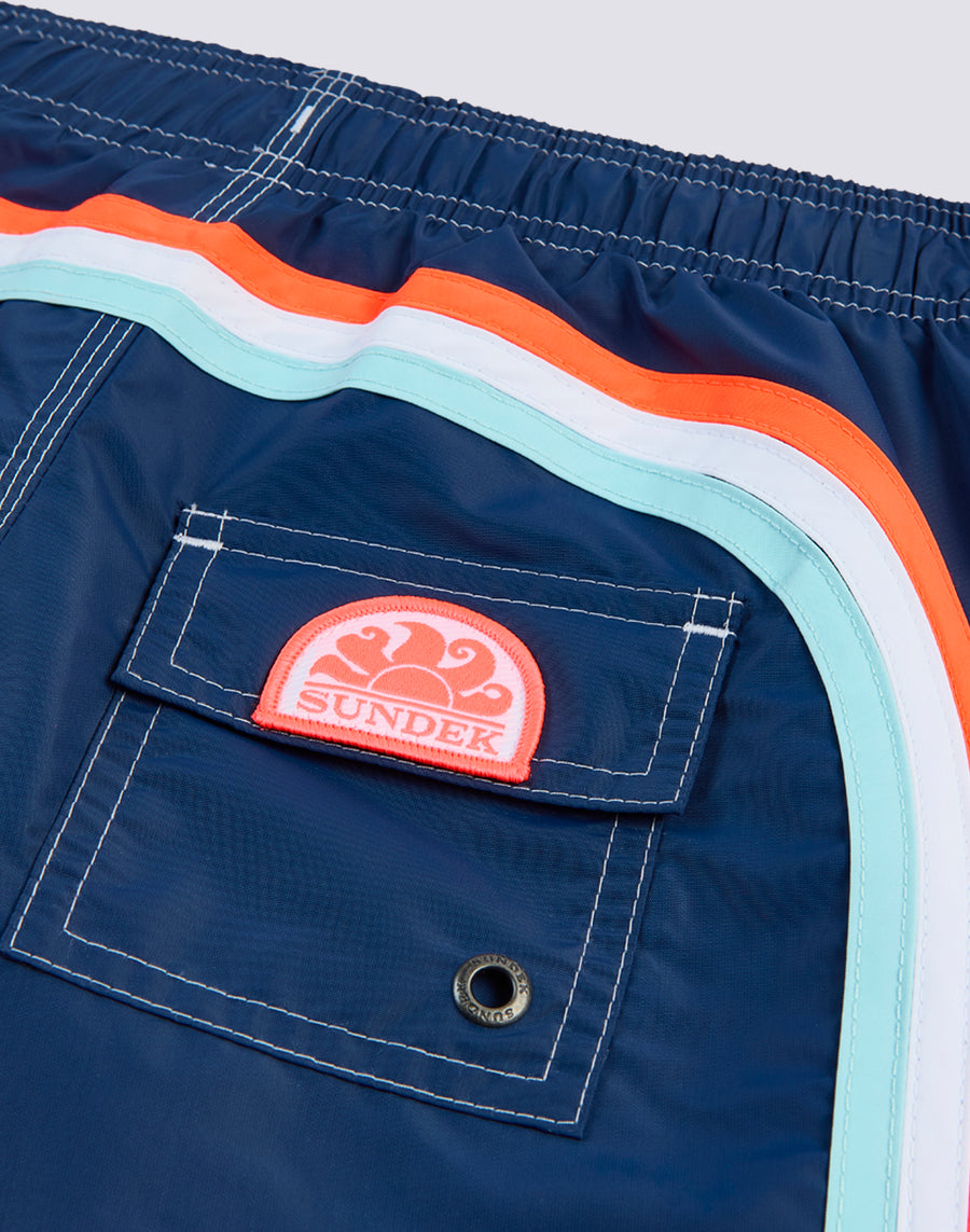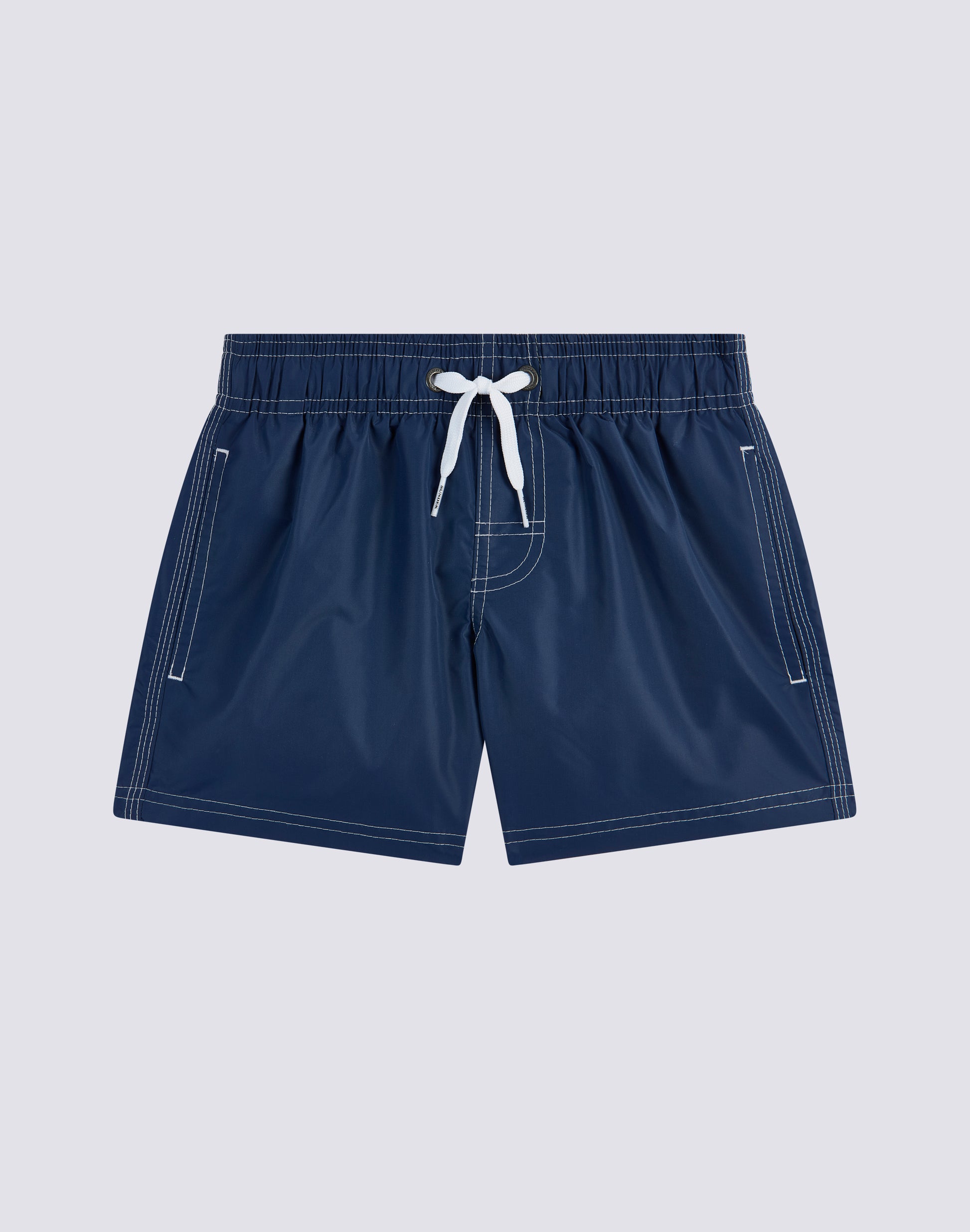 Traje de baño de playa para niño en color intenso, con un tejido ultracómodo y de secado rápido. Es el modelo perfecto para acompañar a tu hijo en todas sus aventuras durante las vacaciones: ligero, práctico y diseñado para que pueda moverse y jugar con total libertad. Confeccionado en nuestro tradicional tafetán de nailon y armado con costuras de tres agujas que garantizan máxima durabilidad. Un básico para empacar año tras año.