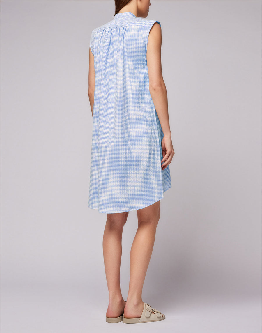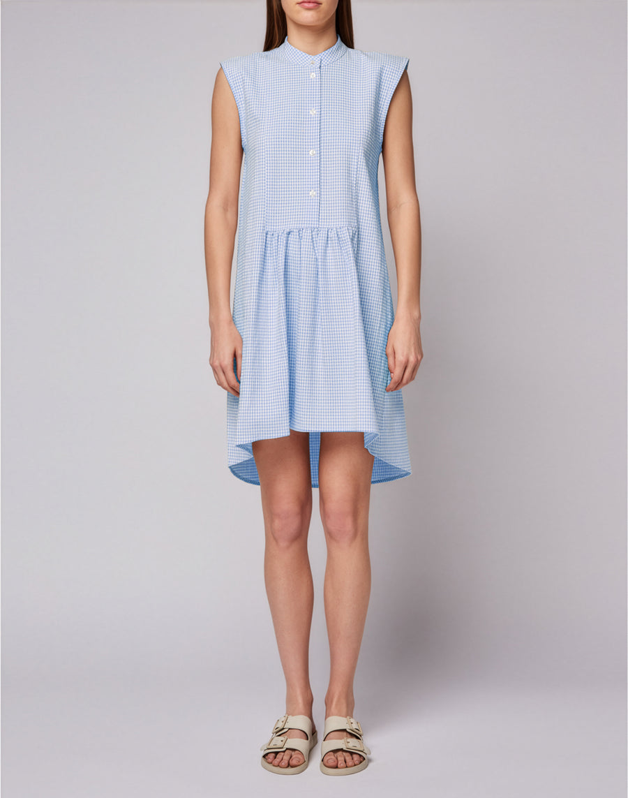 Vestido sin mangas en tela vichy, con un ajuste cómodo y corte corto. Fresco, ligero y perfecto para crear looks veraniegos llenos de estilo.